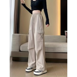 Straight Leg Cargo Pants, Y2K High Waist Solid Pants For Spring & Fall, Women's Clothing